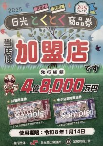 2025年7月15日より日光とくとく商品券が発売されました♪
