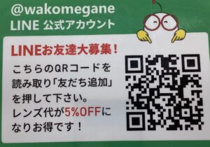 和光メガネをLINEで友達追加していただくとレンズ代5%OFFになります。