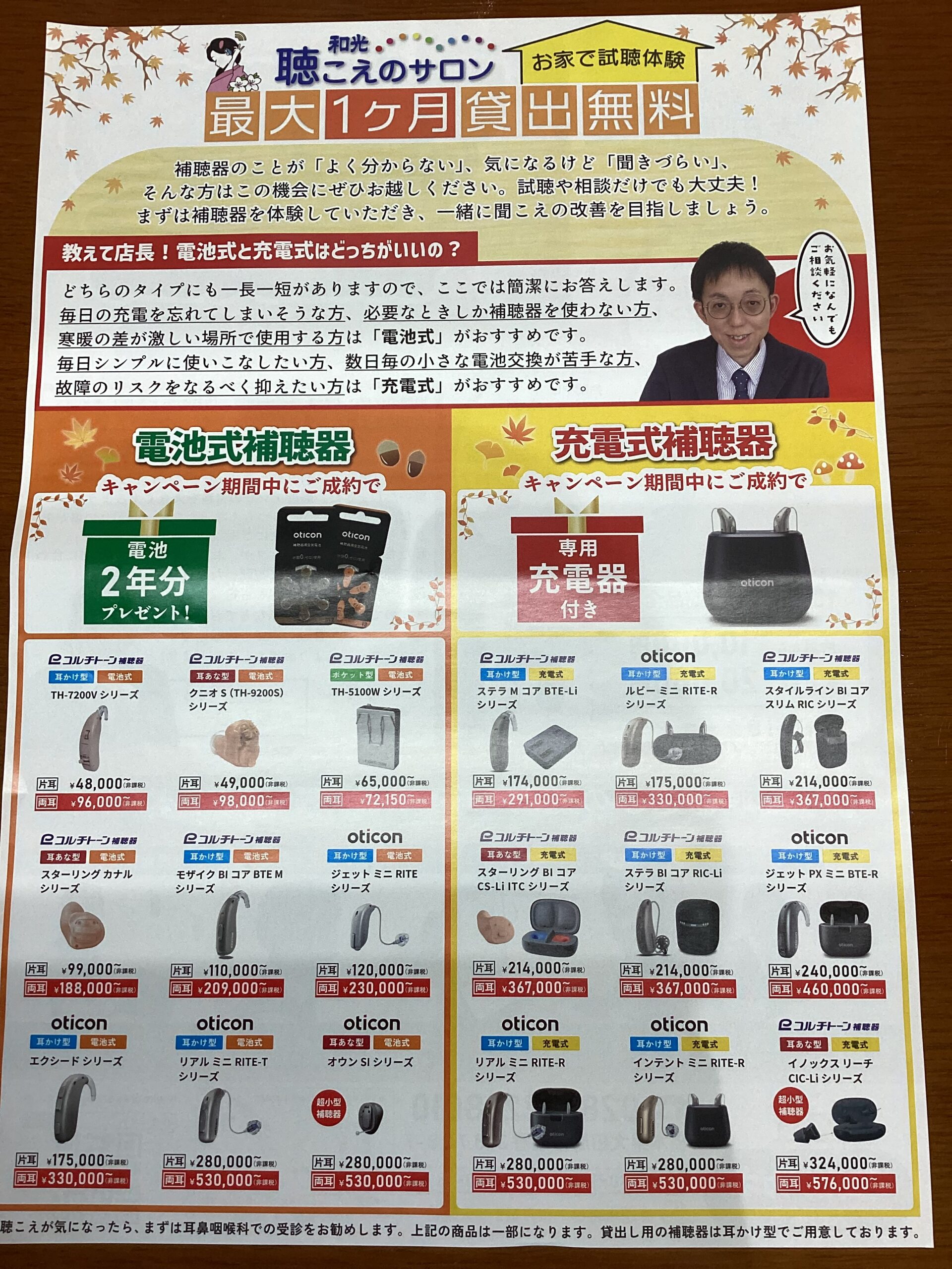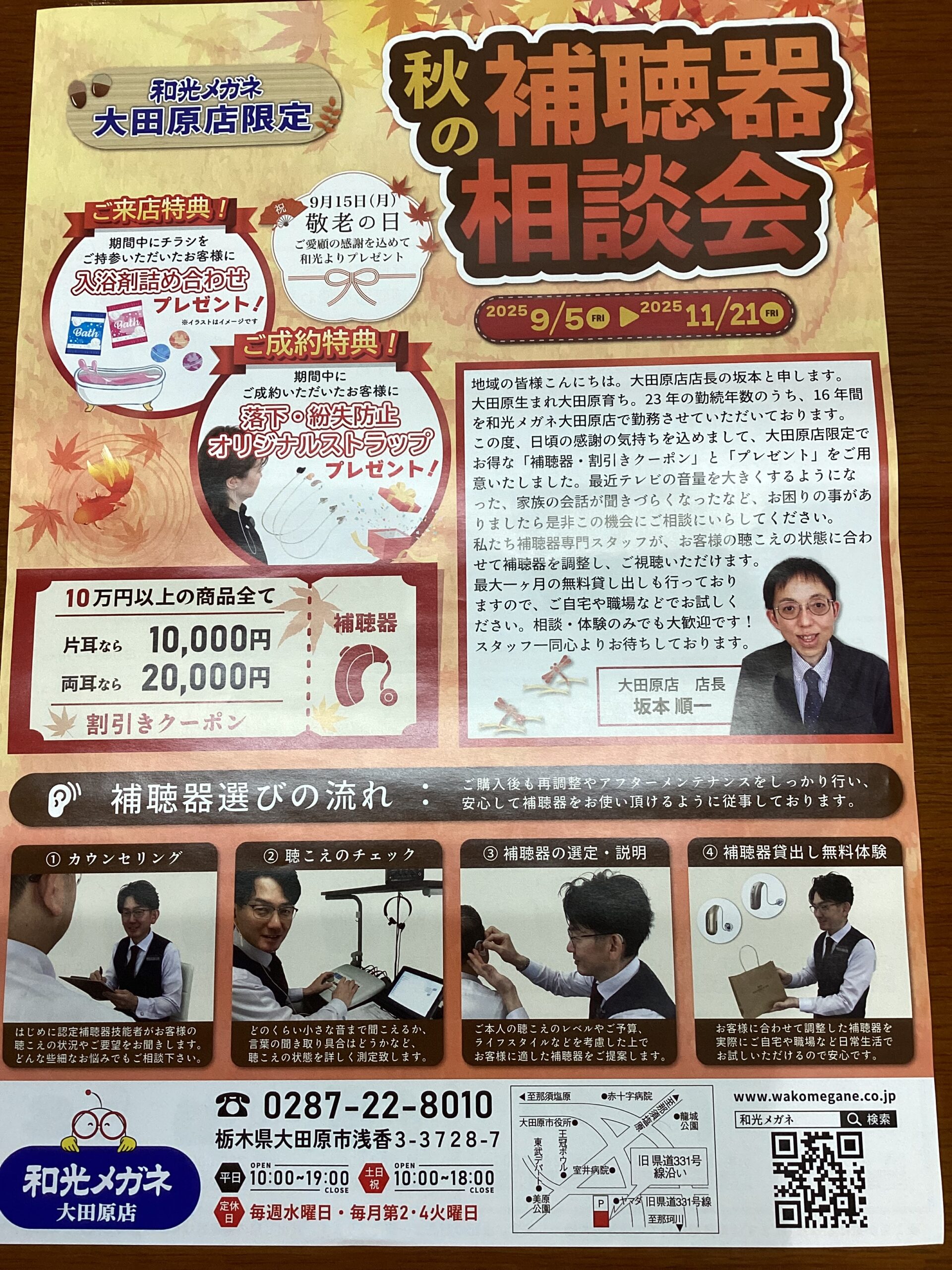 本日より、和光メガネ大田原店では、秋の補聴器相談会と称して、