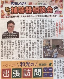 内容は写真のとおり、秋の補聴器相談会を開催させていただいております。
