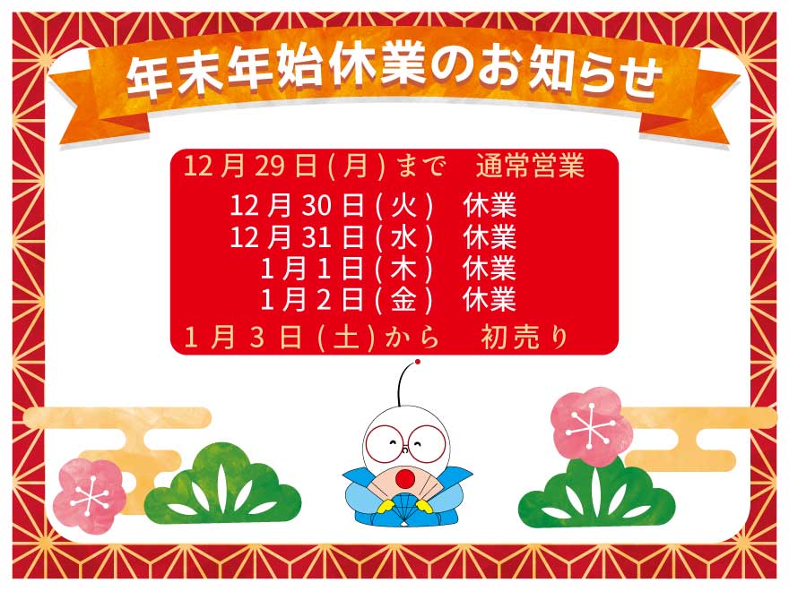 2025年は12月29日(月)までの営業となります。